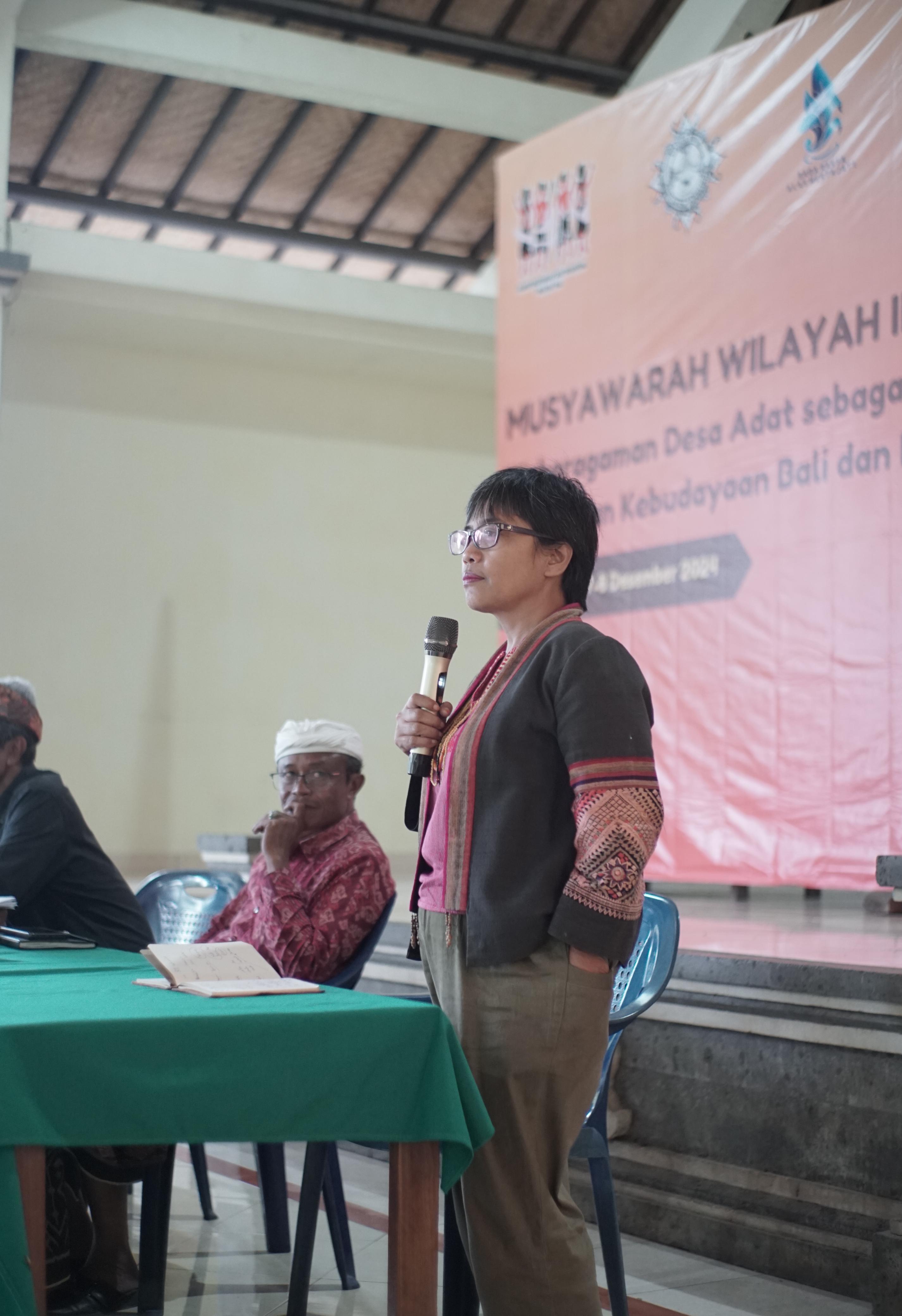 Sekretaris Jenderal AMAN Rukka Sombolinggi beri sambutan saat membuka Muswil AMAN Bali ke III. Dokumentasi AMAN