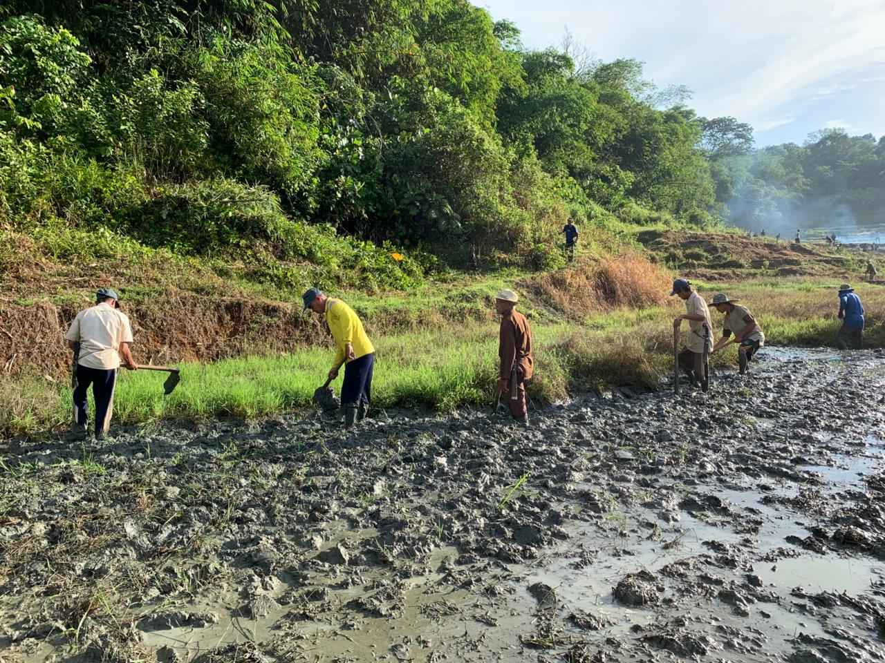 Puluhan orang Masyarakat Adat belum lama ini bergotong royong menggarap Sawah Tangtu atau sawah adat milik komunitas Masyarakat Adat Kasepuahan Guradog di Desa Guradog, Kecamatan Curugbitung, Kabupaten Lebak, Banten.
