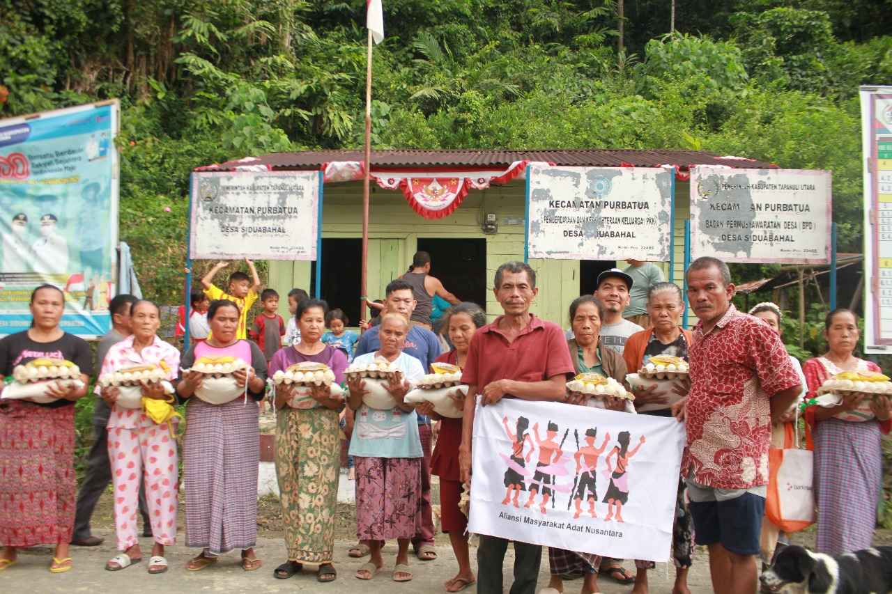 Masyarakat Adat di Tano Batak yang terdampak bencana menerima bantuan dari AMAN. Dokumentasi AMAN