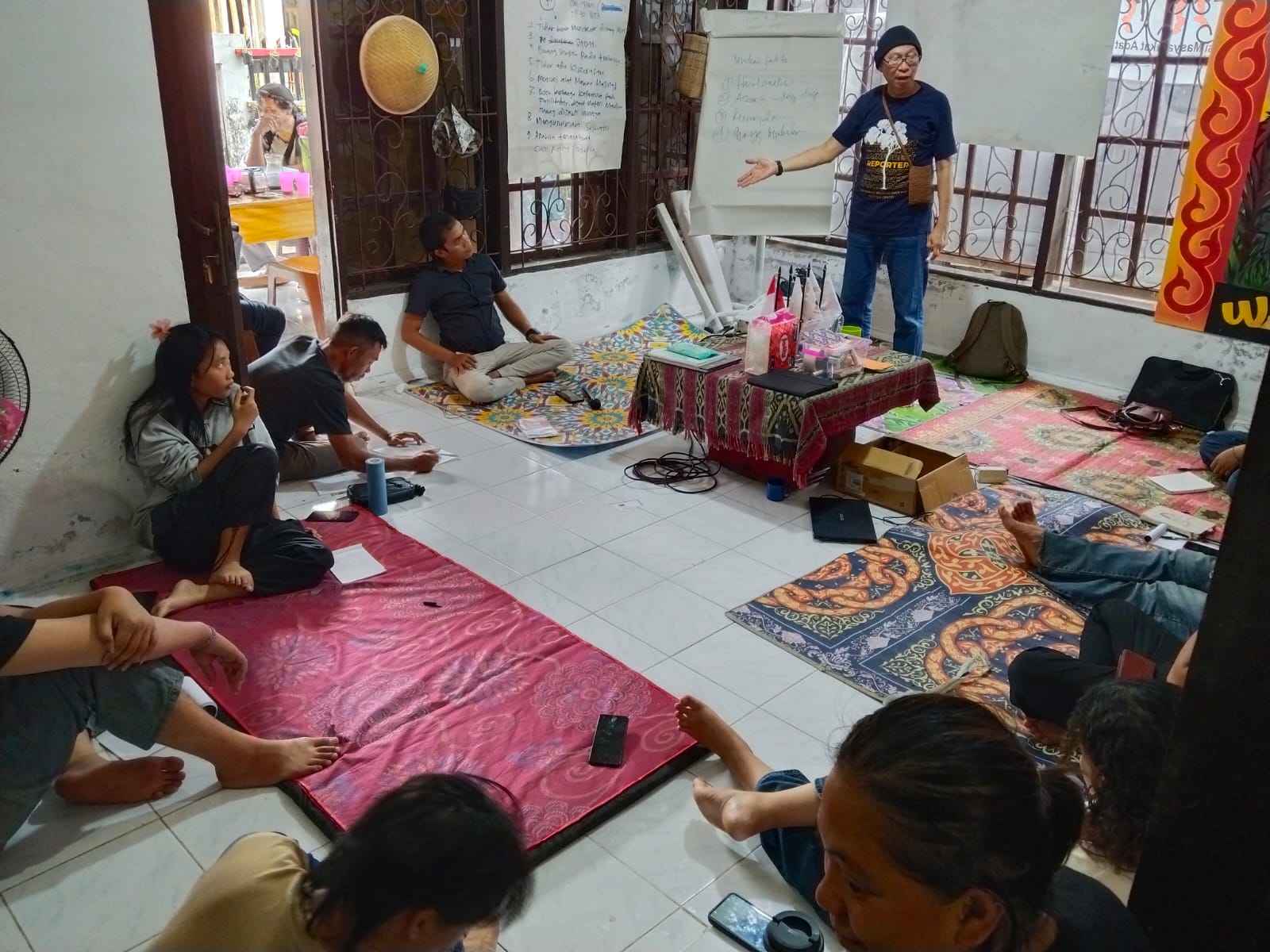Para peserta Jurnalis Masyarakat Adat sedang mendengarkan materi pelatihan dari narasumber. Dokumentasi AMAN