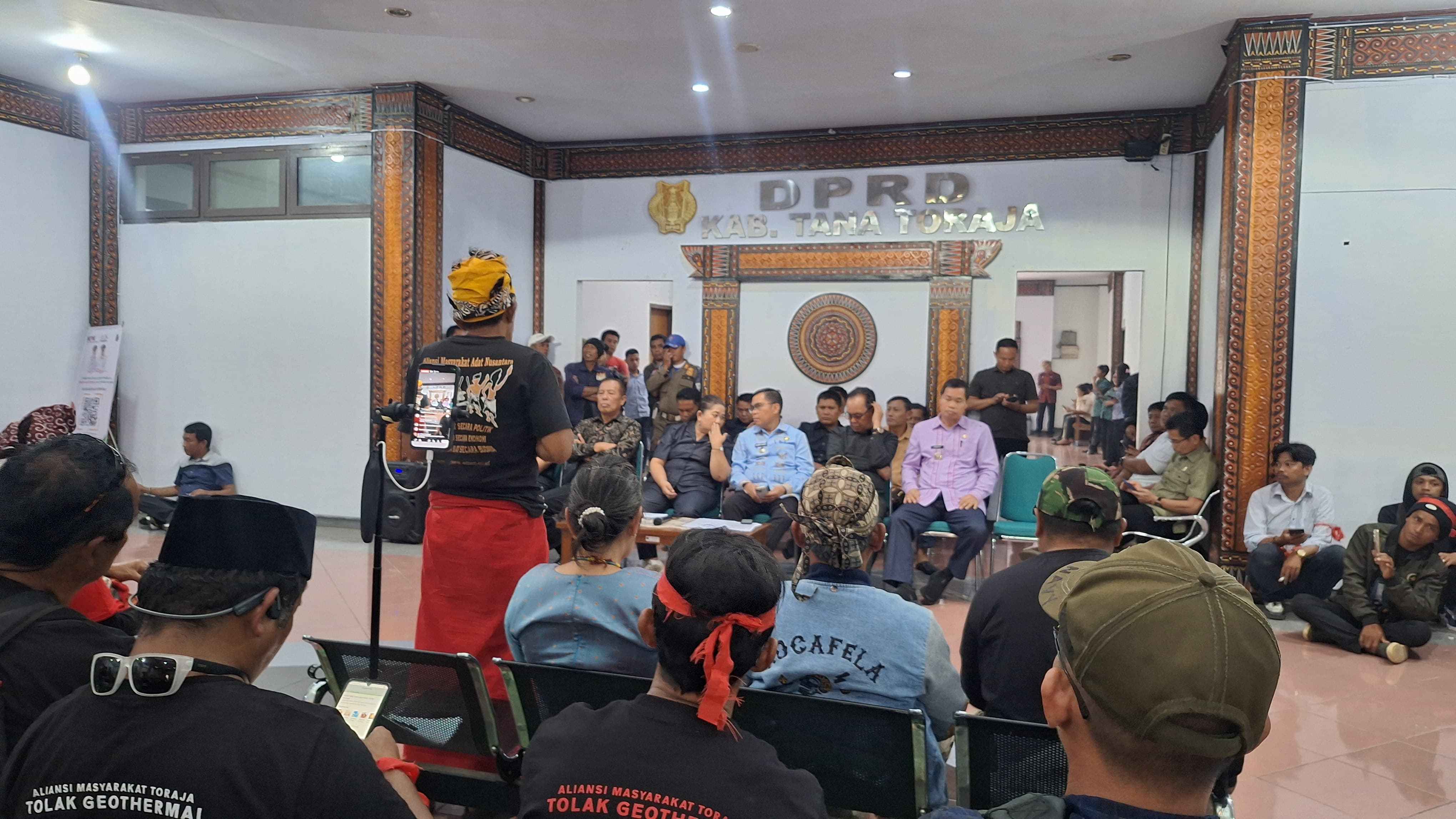Pernyataan ini disampaikan oleh Masyarakat Adat Toraja saat aksi unjukrasa ke DPRD Kabupaten Tana Toraja pada Kamis, 19 Februari 2026. Aksi yang diikuti tokoh adat, kelompok perempuan, pemuda dan masyarakat dari berbagai lembaga ini minta Pemerintah Daerah dan DPRD Toraja menandatangani surat penolakan pembangunan Geothermal sebagai respons atas rencana pelelangan proyek Geothermal di Kecamatan Bittuang, Kabupaten Tana Toraja.