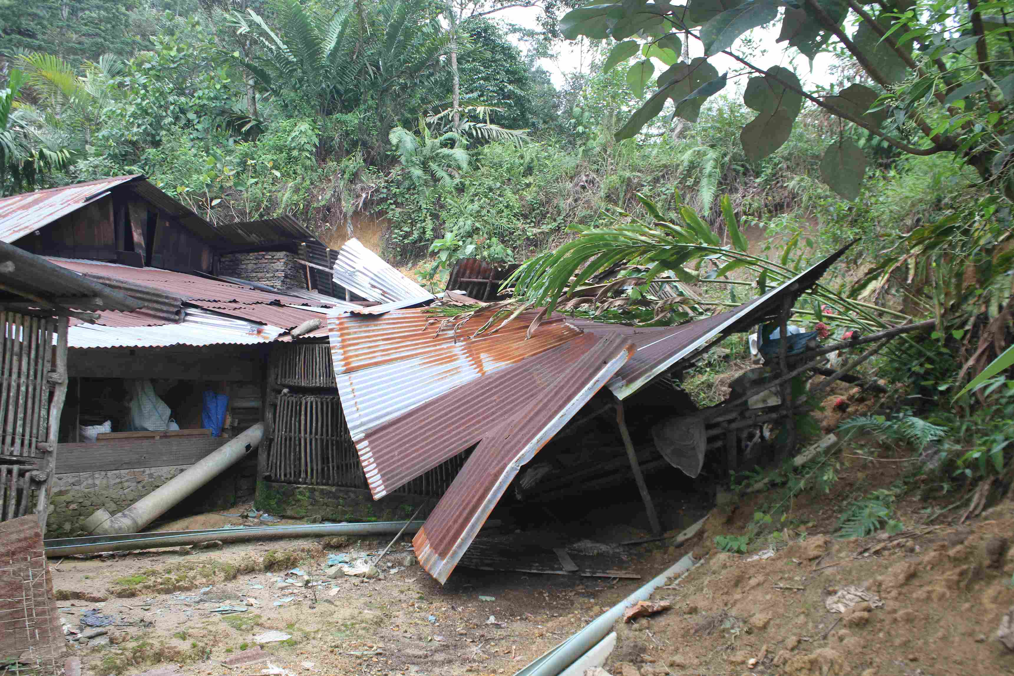 Rumah Masyarakat Adat di Kecamatan Adian Koting, Kabupaten Tapanuli Utara, Sumatera Utara rusak usai disapu longsor. Dokumentasi AMAN