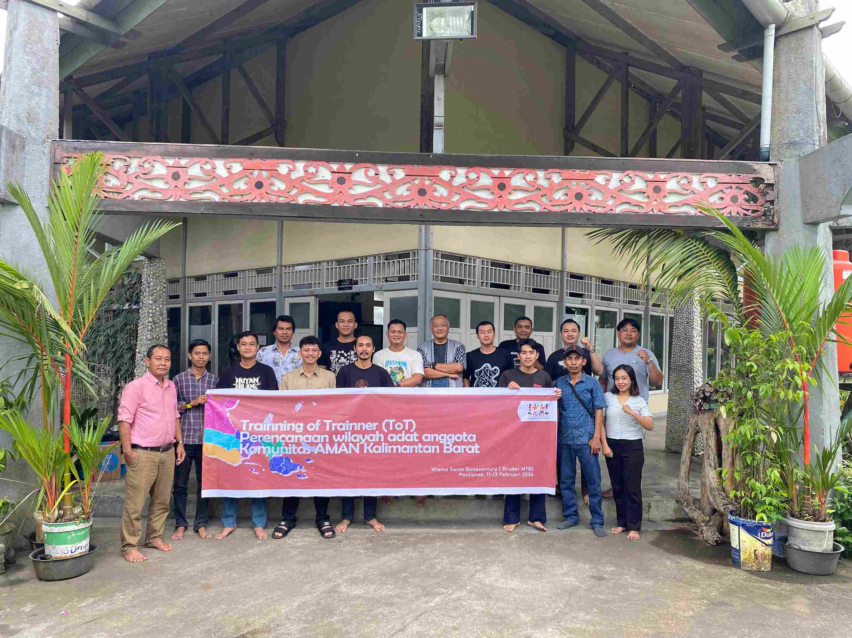 Aliansi Masyarakat Adat Nusantara (AMAN) Kalimantan Barat menggelar kegiatan Training of Trainers (ToT) perencanaan wilayah adat di wisma Bonaventura, Pontianak pada 11–13 Februari 2026.