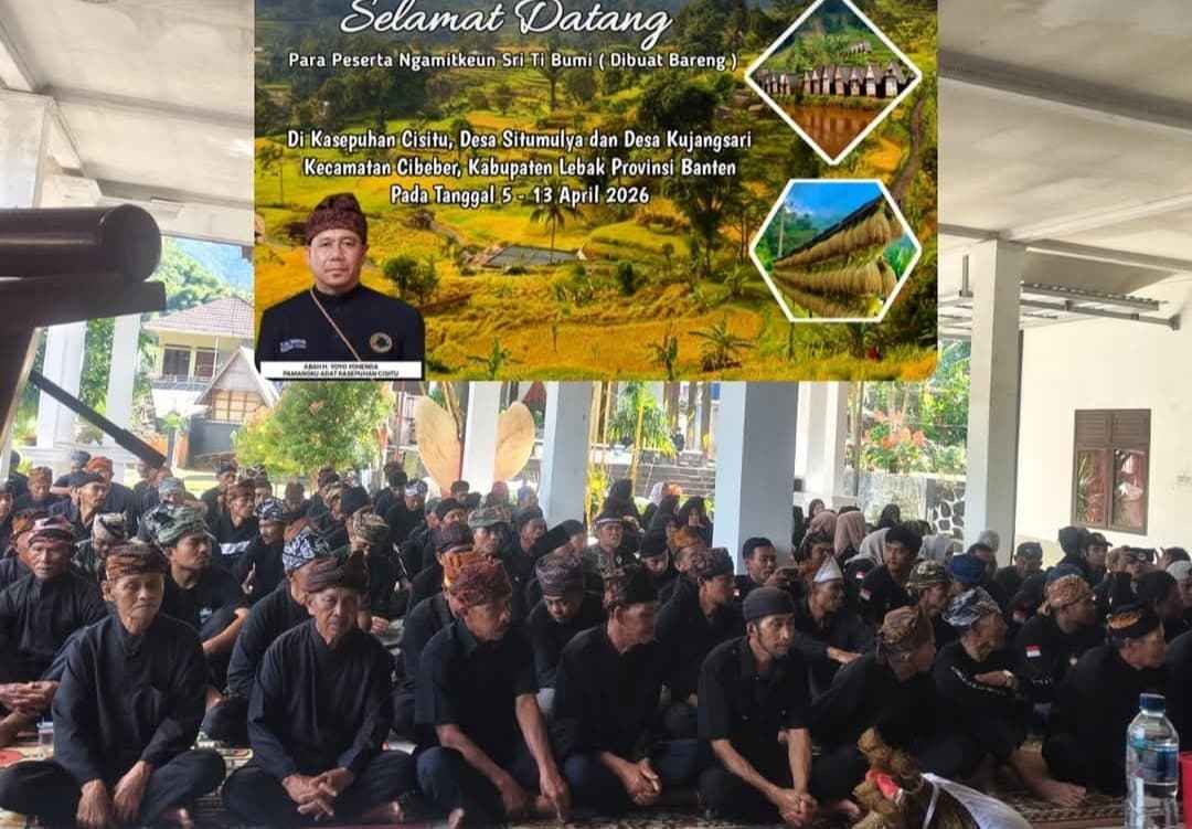 Ratusan Masyarakat Adat Kasepuhan Cisitu di Desa Situmulya Kecamatan Cibeber, Kabupaten Lebak, Banten menggelar ritual "Dibuat Bareung" atau panen padi serentak yang dilakukan di pendopo adat Kasepuhan Cisitu pada Minggu, 12 April 2026.