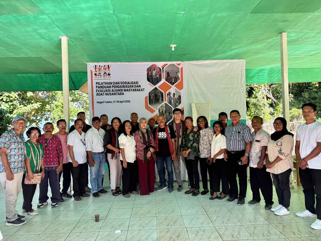 Pengurus Besar Aliansi Masyarakat Adat Nusantara (AMAN) menggelar pelatihan dan sosialisasi panduan pengawasan dan evaluasi di komunitas Masyarakat Adat Negeri Tulehu, Kecamatan Salahutu, Kabupaten Maluku Tengah pada 17-18 April 2026.