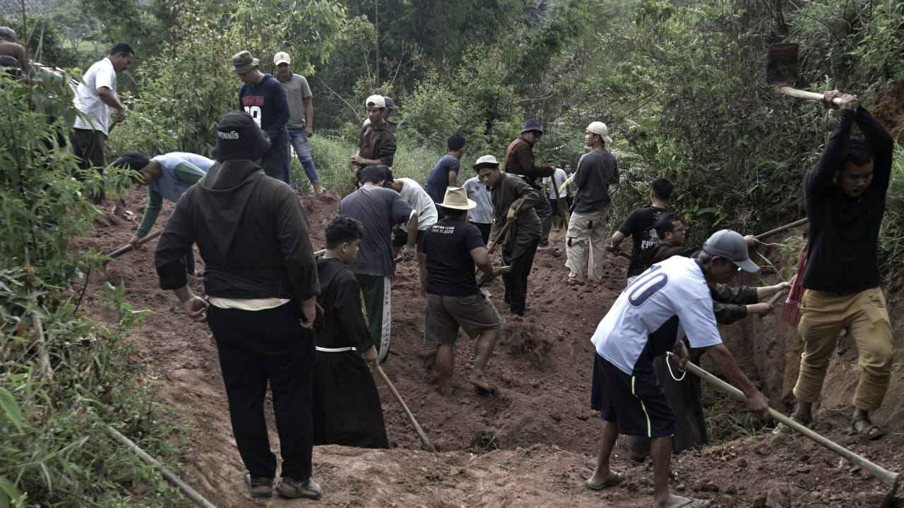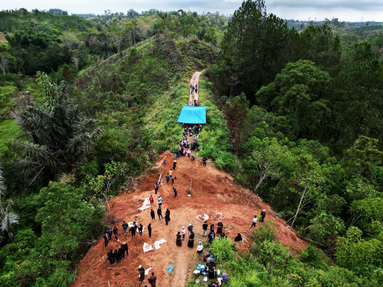 Ratusan orang lintas iman bersama Masyarakat Adat LAMTORAS Sihaporas memperbaiki jalan menuju ladang mereka yang dihancurkan oleh PT Toba Pulp Lestari (TPL) untuk memutus akses warga ke sumber penghidupannya.