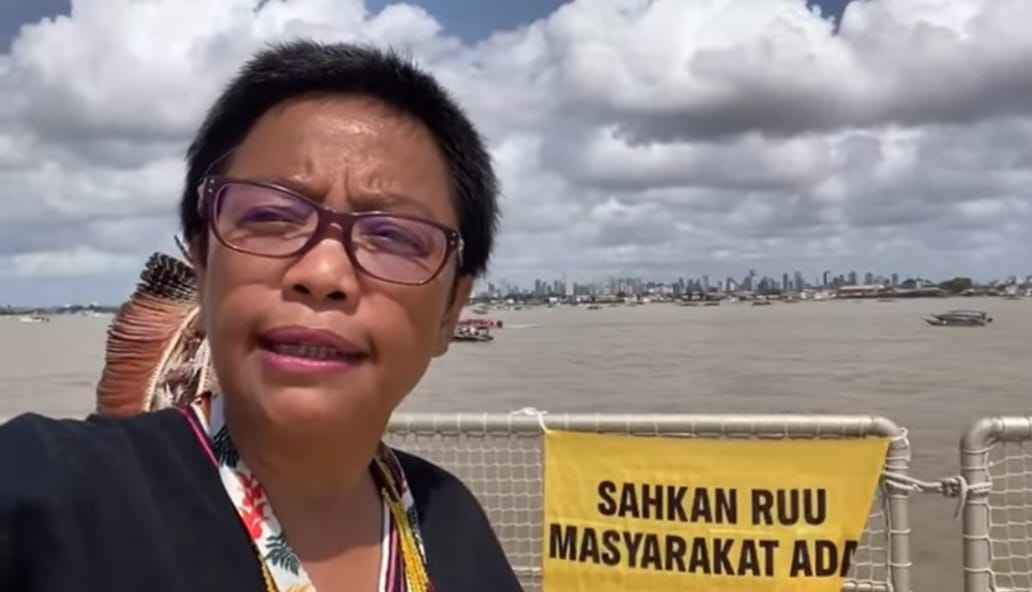 Sekretaris Jenderal AMAN, Rukka Sombolinggi bergabung di kapal Rainbow Warrior milik Greenpeace bersama lebih dari 200 perahu Masyarakat Adat dari seluruh dunia yang turut hadir di COP30.