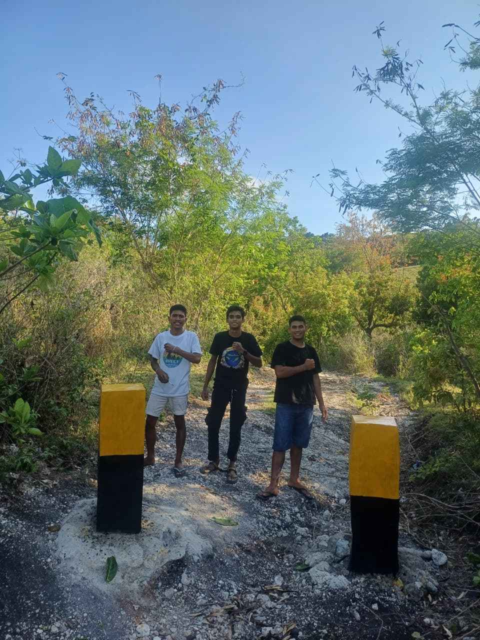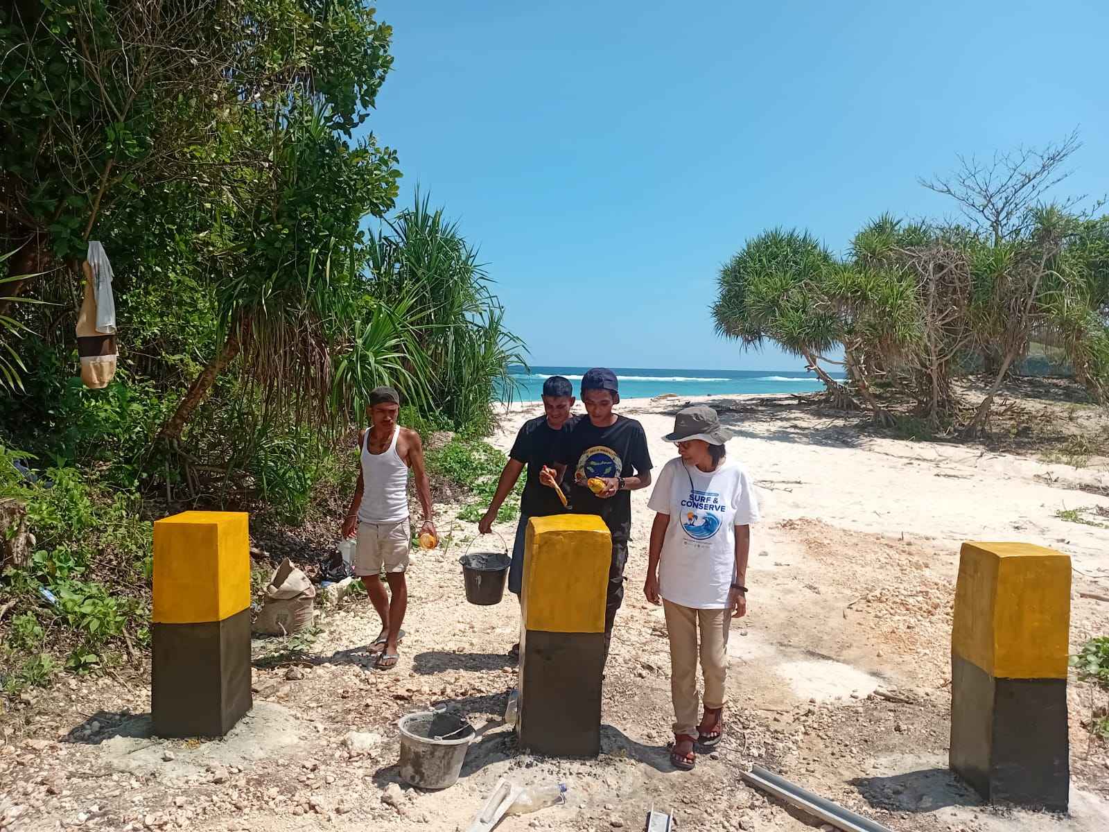 Tiga orang pemuda Adat baru selesai memasang pilar menahan agar kawasan pantai tidak dimasukin kendaraan pengangkut pasir. Dokumentasi AMAN